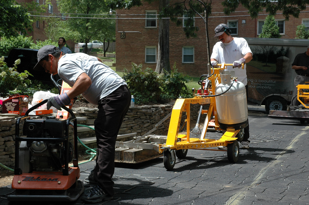 3. Штамповка асфальта и нанесение сплошного термопластика .