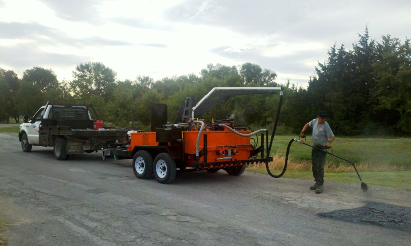 Это также помогает создать сцепление между герметизирующим покрытием или асфальтовым герметиком и поверхностью асфальта, чтобы наполнитель трещин не отталкивал герметик.