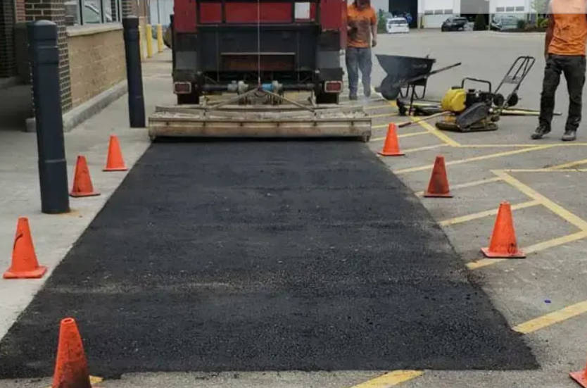 - Предварительная подготовка перед укладкой заплатки является залогом успеха этого метода. Повреждённый участок нагревают, удаляют, а края скашивают, чтобы обеспечить равномерное прилегание нового асфальта к заплатке.